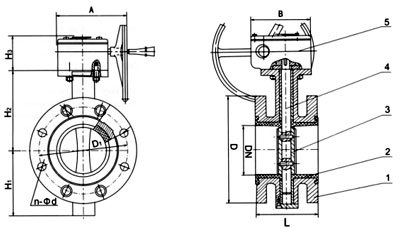 部件列表:1、閥體 2、閥座 3、蝶板 4、閥桿