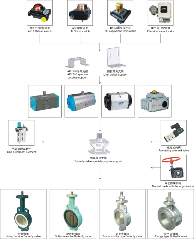 名 稱: 氣動(dòng)蝶閥組成示意圖
