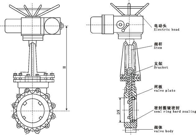 1、刀形漿閘閥按照口徑不同制成暗桿和明桿兩種形式(暗桿DN50~900mm,明桿DN50~900mm),全圓形的直流通道設(shè)計不存渣、不卡阻。刀板底端加工成刀刃狀,對松軟物料如纖維、紙漿、木漿具有切斷功能,同時有良好開啟和關(guān)閉作用。在刀板上端安裝有硬聚四氟乙烯刮泥器,可防止粉塵、砂礫等擦傷性物質(zhì)進入填料盒,可顯著提高刀板壽命。閥板材質(zhì)選用不銹鋼、精磨拋光處理可獲得最佳密封效果。設(shè)計緊湊、占據(jù)空間小、重量輕、價格便宜、易于安裝、耐磨防堵措施完善、便于維修、使用方便及壽命長,并且可任意選用驅(qū)動裝置。