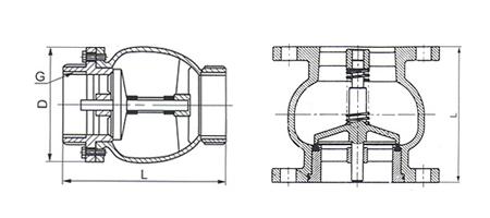 ◆H41T型泵前消聲止回閥鐵殼銅芯主要外形尺寸: